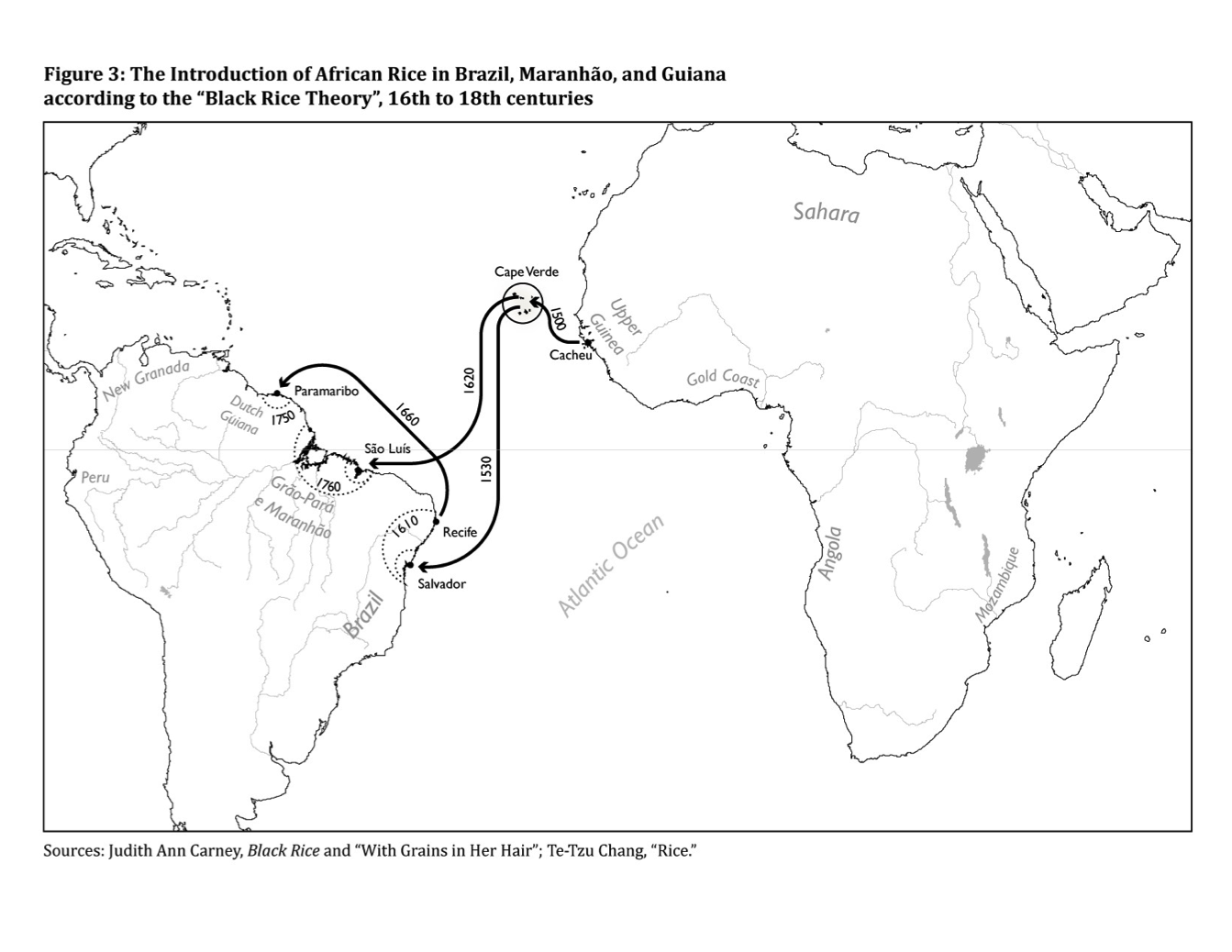 [2] In 2003, Carney did write a short article on African rice in Portuguese America, but in this article, her claims for the transfer of a “black rice” system from Upper Guinea to Brazil and Maranhão are based on disputable evidence. Her “black rice theory” is discussed later in this paper. Judith A. Carney, Black Rice, and “With grains in her hair.”